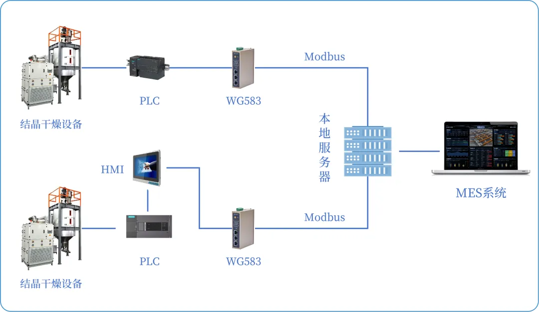 能夠?qū)崟r(shí)采集結(jié)晶干燥設(shè)備的運(yùn)行狀態(tài)(運(yùn)行/停機(jī)/故障)、關(guān)鍵工藝參數(shù)(結(jié)晶溫度、干燥濕度、物料液位、實(shí)時(shí)風(fēng)力等),支持5G/4G/WiFi/以太網(wǎng)等多種上網(wǎng)方式,上傳數(shù)據(jù)進(jìn)行監(jiān)控。